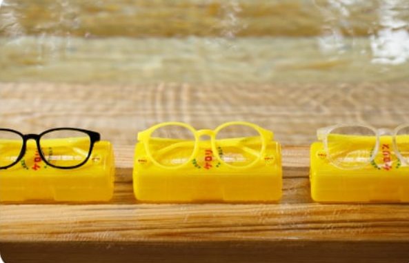 お風呂用メガネは、カラーはイエロー、クリア、ブラックの3種類。度数は−2.00から−6.00までの5種類があり、幅広い近視ユーザーに対応しています。